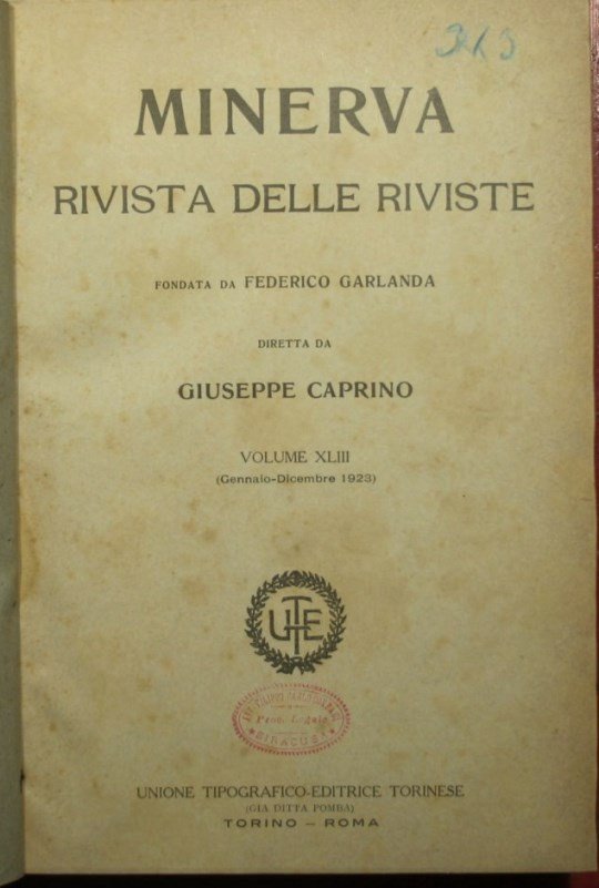 Fondata da Federico Garlanda. Diretta da Giuseppe Caprino - Collana Minerva - Rivista delle riviste - Gennaio-Dicembre 1923, Anno XXXIII, n. 43 - in 8° - pp.XIV + 896 - Mezza tela - Ventiquattro fascicoli in un volume