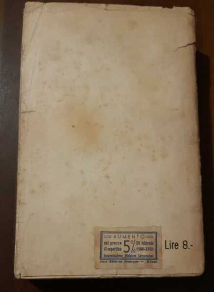 Copertina: cartonata, ingiallita. Legatura: a colla. Dorso: nervato, scolorito. Taglio: ingiallito, irregolare in modo lieve, sporco. Sguardi: ingialliti. Frontespizio: ingiallito. Pagine testo: ingiallite, brunite ai margini. Margini delle pagine: ingialliti. Particolarità: esemplare numerato. Esemplare numerato 867 , una parte della copertina è staccata dal dorso Buono (Good) .