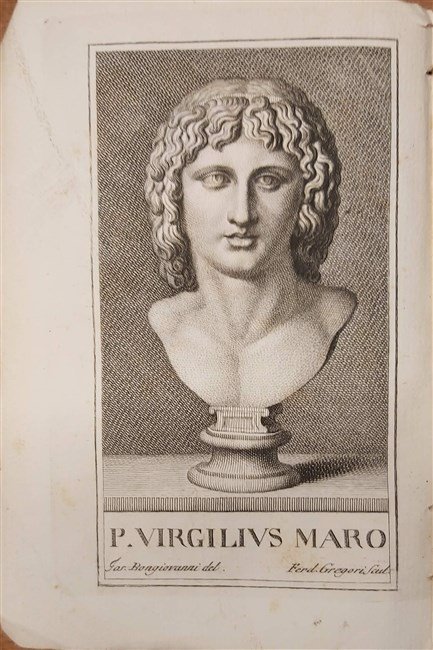 in-8, pp. 95, leg. carta dec. novecentesca. Bell’antip. inc. in rame raff. il busto di Virgilio firmato F. Gregori su dis. di Bongiovanni. Con due tavv. inc. in rame f. t. di cui una più volte rip. Precede la descriz. del Museo la storia dello stesso, anche in rapporto alla città di Sabbioneta. Sono riportate e commentate le iscrizioni romane. Timbro di bibl. estinta. Qualche mancanza di carta al d. ma bell'esempl. su carta forte. [140]