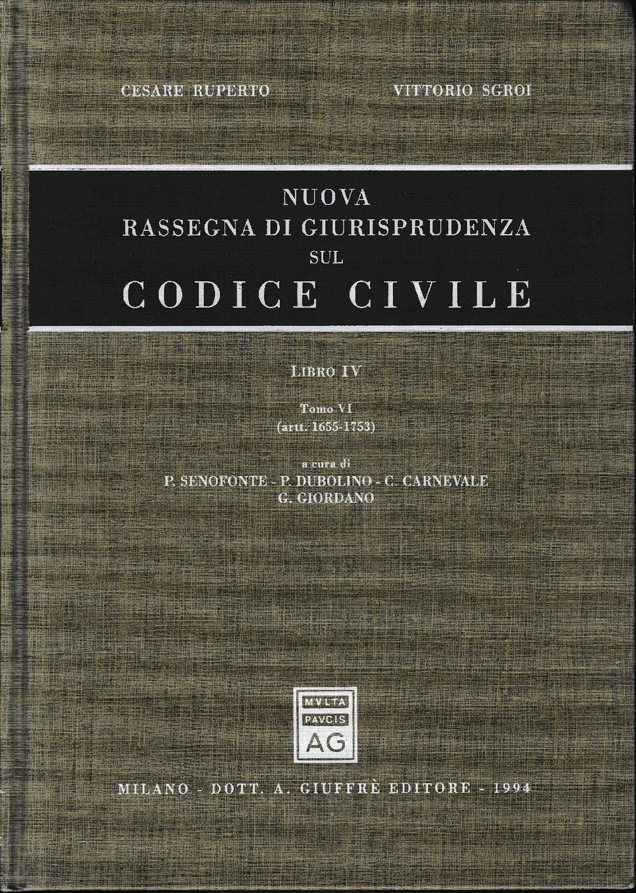 Nuova rassegna di giurisprudenza sul Codice civile. Artt. 1655-1753 ( vol. 4/ tomo 4) | Rare and modern books | Ruperto, Cesare Sgroi, Vittorio, ,Ruperto, Cesare Sgroi, Vittorio