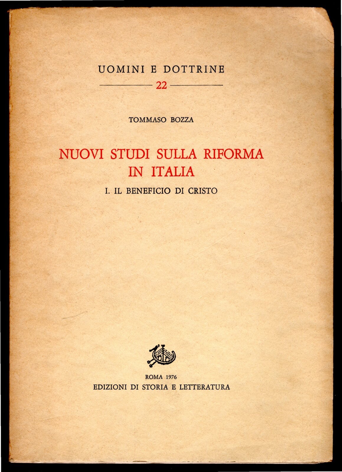 Nuovi studi sulla riforma in Italia. I. Il beneficio di Cristo | Rare and modern books | Bozza Tommaso, Bozza Tommaso