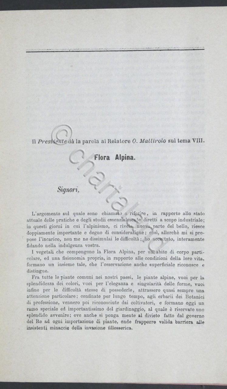 Flora Alpina: la ricchezza delle Alpi considerata sotto l'aspetto della flora ornamentale ed officinale - Relatore Oreste Mattirolo - ed. 1883