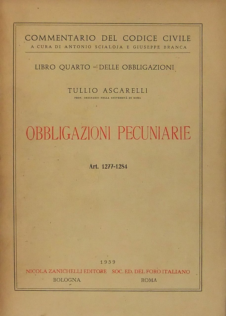 Obbligazioni pecuniarie. Art. 1277-1284 | Rare and modern books | Ascarelli Tullio (1903-1959)