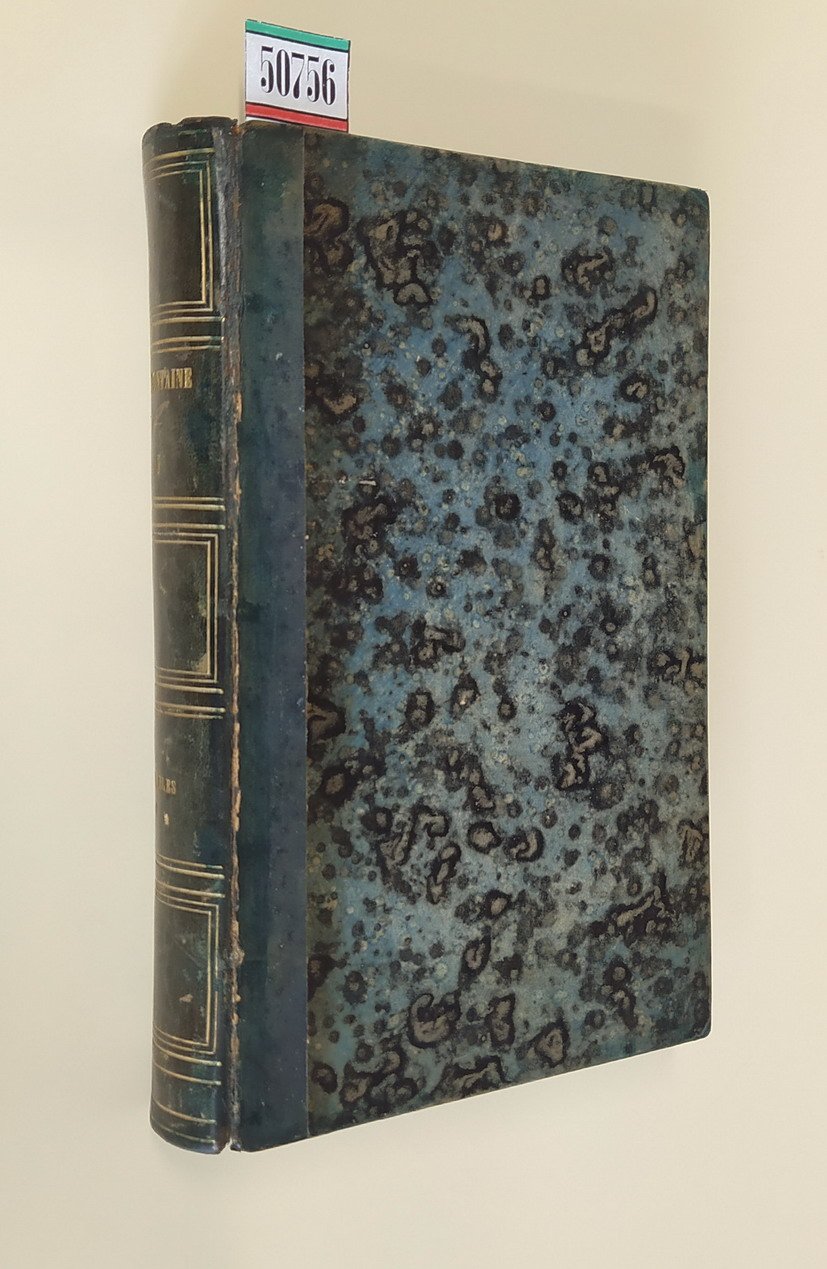 Vol. in -8 (14 x 21 cm.), legatura d'epoca mezza pelle verde, piatti marmorizzati in tinta, filetti e titoli in oro al dorso, testo in francese (texte en français), pag. xlvij, (1), 534, 1 ritratto di Jean De La Fontaine inciso in antiporta. Fioriture interne più o meno diffuse, per il resto in buono stato di conservazione (bon état).