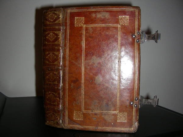 in-16 (mm. 185x115), pp. 515, bella leg. veneziana p. pelle con doppio riquadro in oro ai piatti e fregi ai picc. ferri agli angoli, dorso a 6 scomparti con nervi e fregi in oro. Tagli dorati e fermagli in metallo bianco. Front. a due colori con picc. incisione in rame con l’effige del Cristo. Testo su due colonne e a due colori. Con belle incis. in rame a p. pag. di I. Piccini. Picc. dif. alle cuffie al d. ma ottimo esempl. [107]