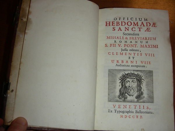 OFFICIUM HEBDOMADAE SANCTAE secundùm Missale & Breviarium Romanorum S. Pii V Pont. Maximi jussu editum Clementis VIII et Urbani VIII auctoritatem recognitum.