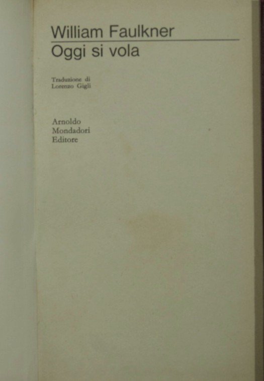 Oggi si vola | Rare and modern books | Faulkner William
