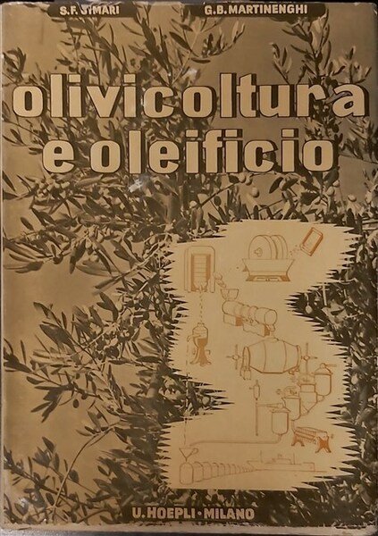 in-4, pp. XX, 554, (2), bross. edit. con sovracop. Trattato ampiamento illustrato sulle generalità botniche della pianta, produzione, coltura, semina, terreno, potatura, parassiti e raccolta. La seconda parte è dedicata alle tecnologie, industri e commercio: spremiture, estrazioni, sanse, raffinazioni, olii, olive da tavola. Perfetto esempl. [162]