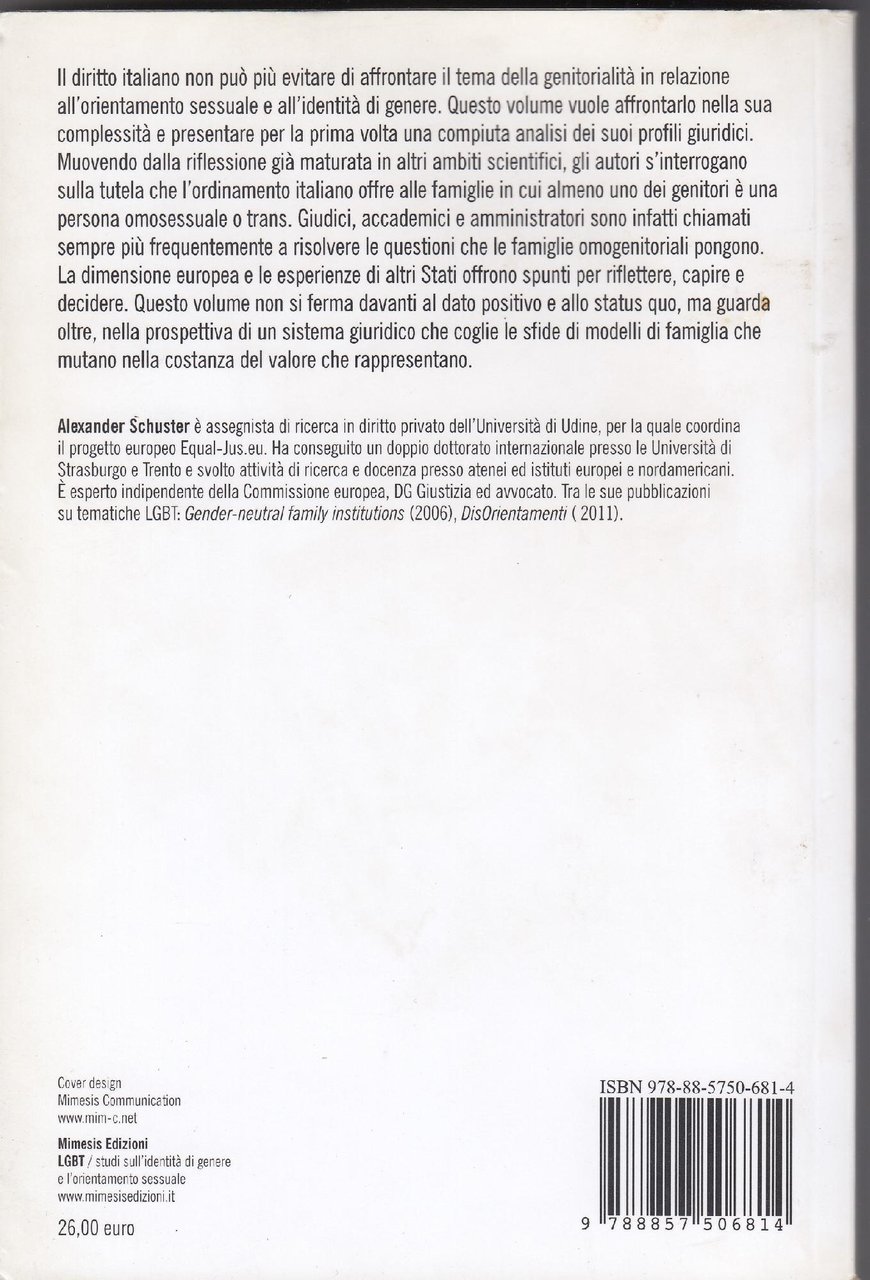 Omogenitorialità : filiazione, orientamento sessuale e diritto | Rare and modern books | a cura di Alexander Schuster, ,a cura di Alexander Schuster