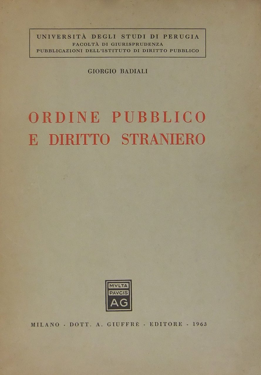 Ordine pubblico e diritto straniero | Rare and modern books | Badiali Giorgio