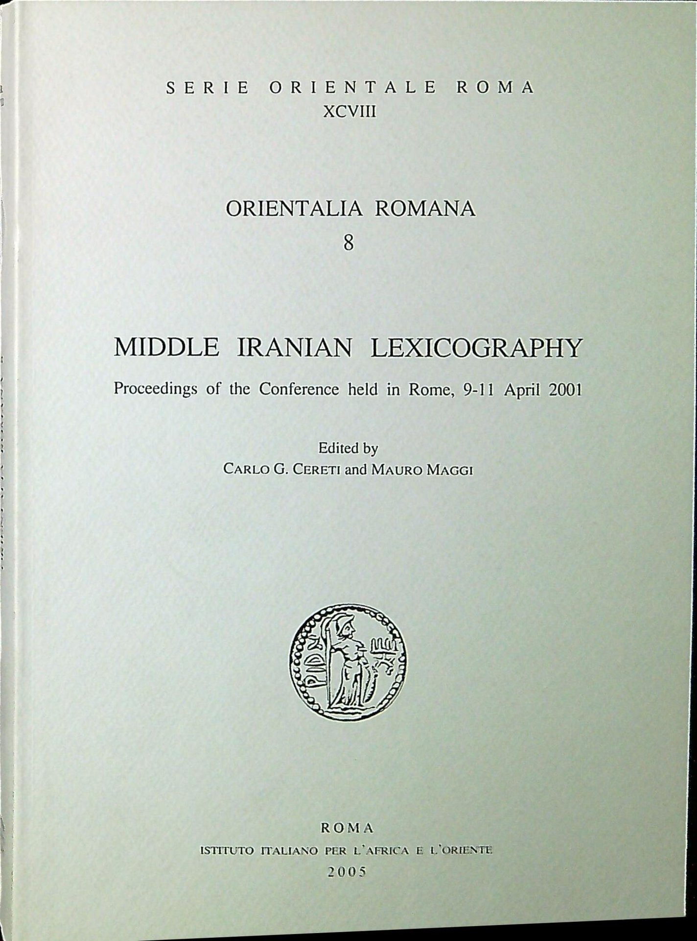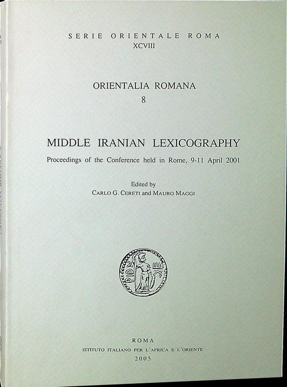 edited by Carlo G. Cereti and Mauro Maggi Orientalia romana 8: Middle Iranian lexicography : proceedings of the Conference held in Rome, 9-11 April 2001. Roma, Istituto italiano per l'Africa e l'Oriente 2005, 400 p. : ill. ; 24 cm. (74774)