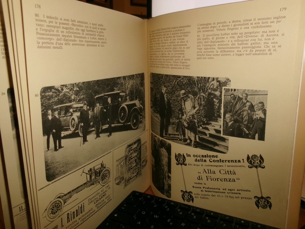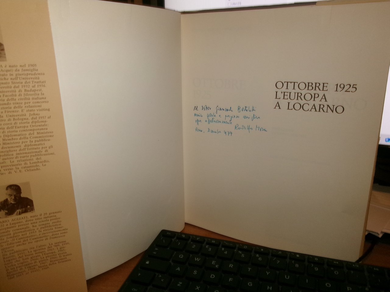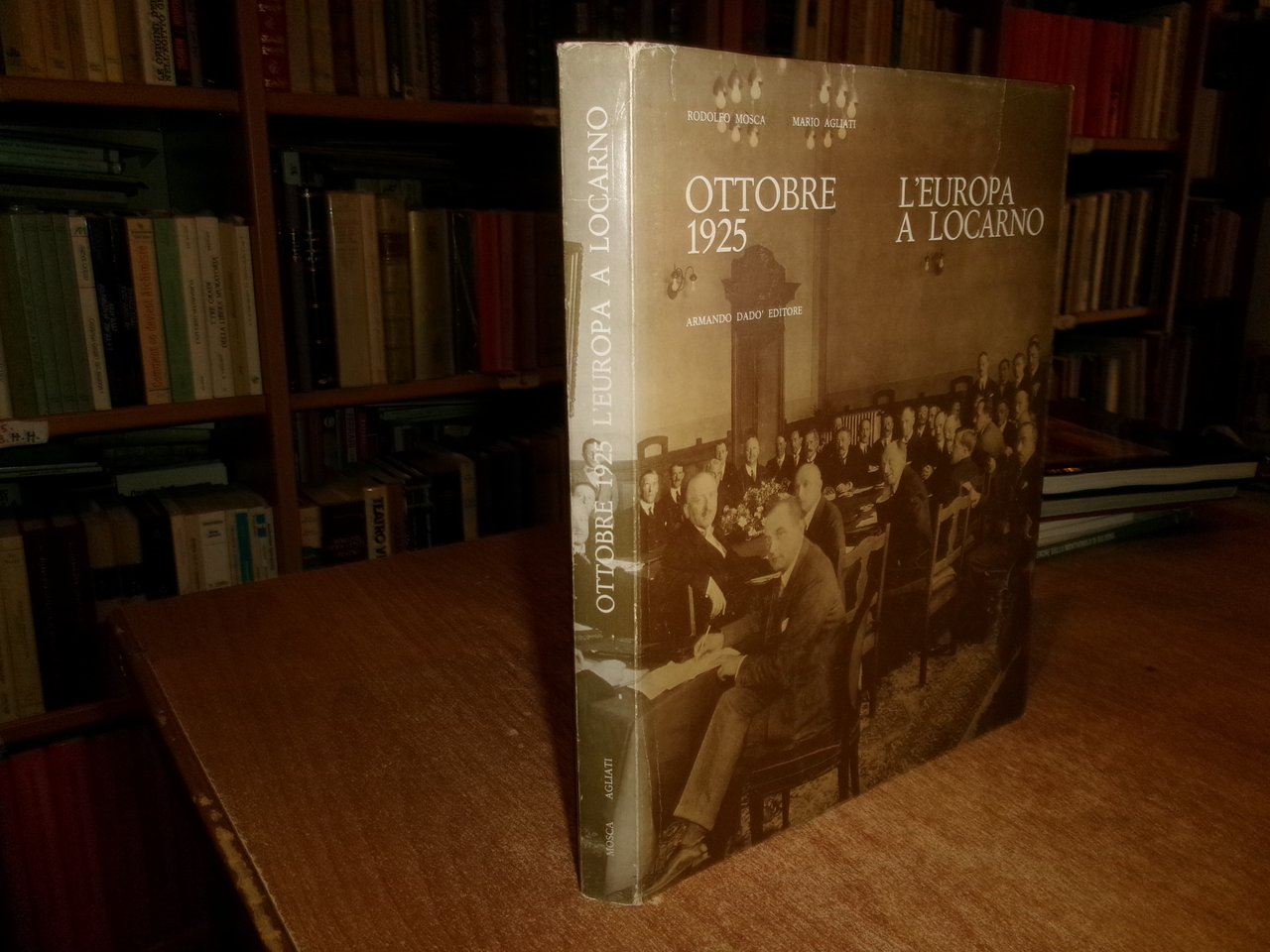 Ottobre 1925. L'Europa a Locarno + opuscolo. Mosca, Rodolfo / Agliati, Mario. Prefazione di Carlo Speziali. Locarno, Armando Dado' Editore, 1975. In-8° grande, tela edit. con titoli in oro e sovracopertina. 193, (4) pp. con centodieci illustrazioni + opuscolo con punto metallico da pag. 209 a pag. 228 (estratto). Libro ben conservato con dedica firmata dall' Autore all' occhietto. Piccoli strappetti nella sovracopertina riparati con scotch. Uff. B - III - 3 -