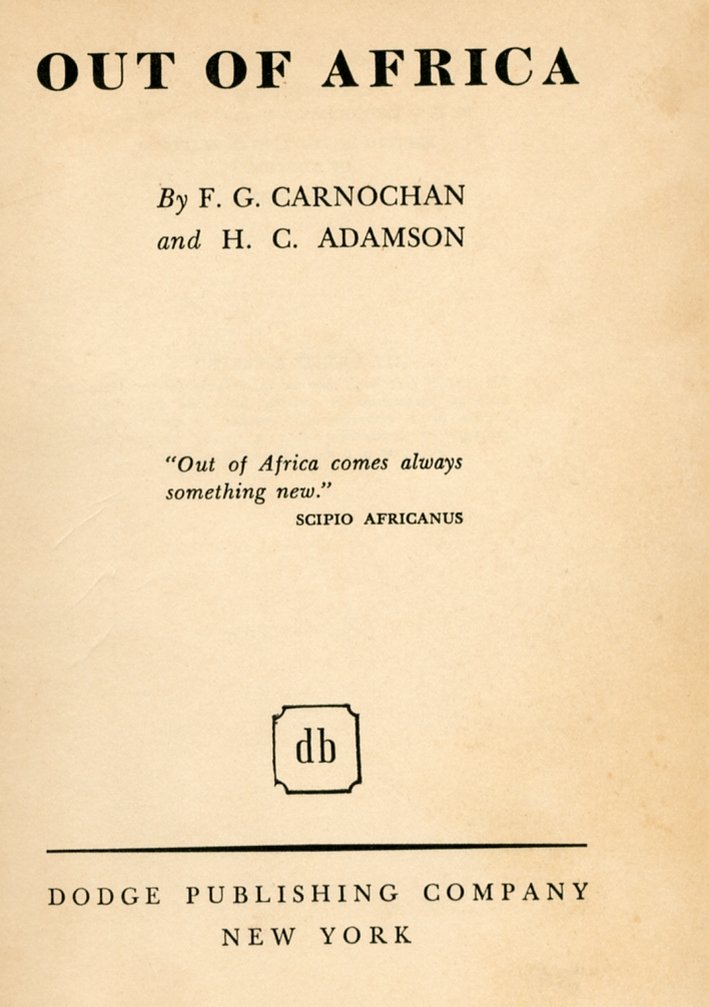 Out of Africa | Rare and modern books | Adamson H. C., Carnochan F. G.