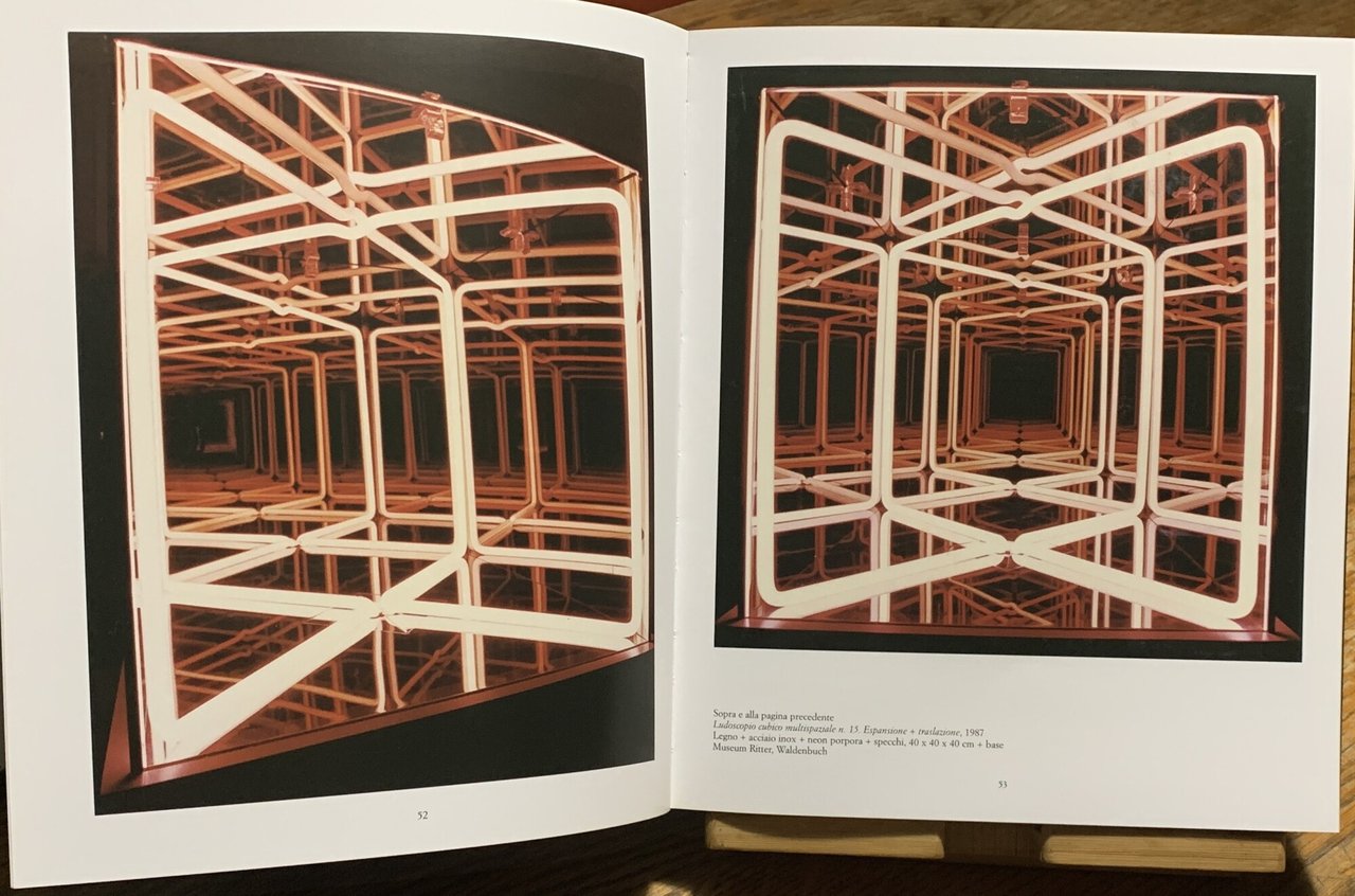 I ed.: marzo 2010. Testo in italiano/inglese. Traduzioni: Henry Neuteboom. VIII grande, quasi quadro/ 200/ brossura satinata con ampi risvolti, con grafica in n/grigio/b e con i piatti illustrati a colori (Paolo Scirpa, "Ludoscopio n. 91. Convergenza e divergenza cromospaziali", 1982. Acciaio inox+neon colorati+specchi, 50x70x70 cm. Collezione Valmore Studio d'Arte, Vicenza). Illustrazioni in b/n nel testo e f.t. ed illustrazioni a colori f.t.. Fotografie: Sonia Alves, Ada Ardessi, Atto, Attilio e Orazio Bacci, Maurizio Bianchi, Antonio Bodini, Corrado Campione, Enrico Cattaneo, Gianfranco Cazzulani, Antonio Dalan, Luciano Marin, Giuseppe Marvelli, Giovanni Molino, Rafaelo Meija Sarmiento, Rocco Palinuro, Giovanni Ricci e Annalisa Guidetti, Oscar Savio, Margherita Scirpa, Vittorio Sedini, Fabio Zonta. Impaginazione: Bianca Franchetti. Stato buono-ottimo. Sommario: L'ottica dell'infinito/ The optics of infinity; Marco Meneguzzo - Opere 1964-2009: tavole a colori - Scritti di Paolo Scirpa - Opere 1964-2009: il percorso - Progetti architettonici e interventi metaurbanistici 1980-2009 - Apparati (Antologia critica - Notizie biografiche/ Biographical notes; Margherita Scirpa - Esposizioni - Sintesi bibliografica; a cura di Carla Carrà).