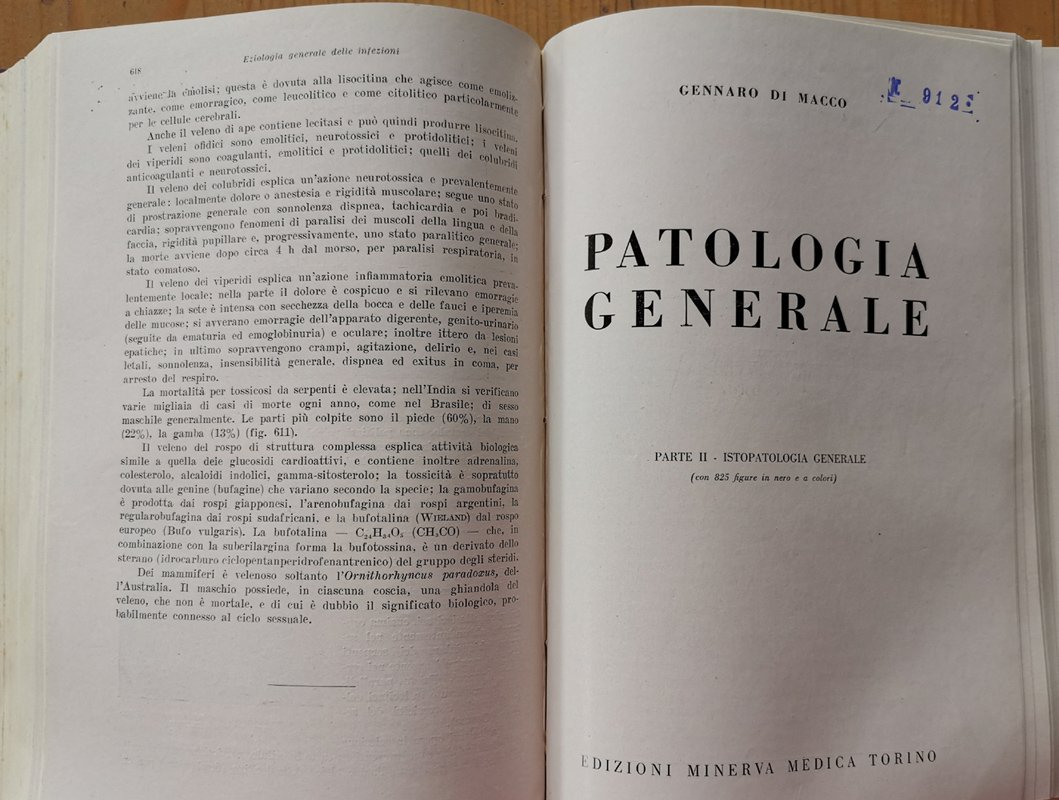 PATOLOGIA GENERALE. Parte I: Eziologia generale - Parte II: Istopatologia generale. | Rare and modern books | Di Macco Gennaro.