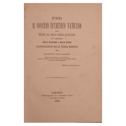 Per il Concilio Ecumenico Vaticano - Filosofia del diritto pubblico ecclesiastico. Su i rapporti della religione e dello stato | Rare and modern books | Zanghì Coco Giuseppe