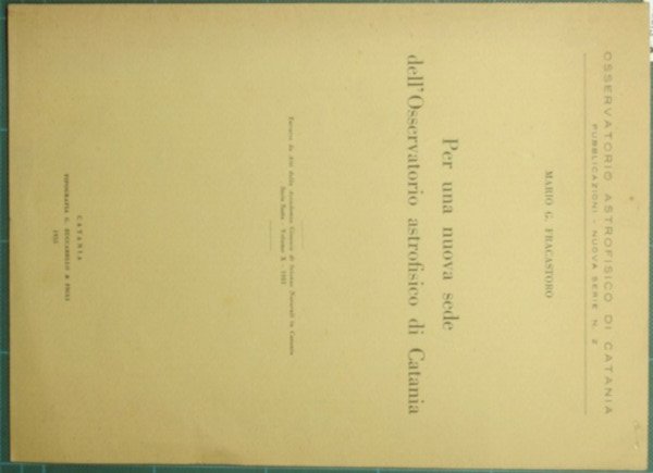 Per una nuova sede dell'Osservatorio astrofisico di Catania | Rare and modern books | Fracastoro Mario G.