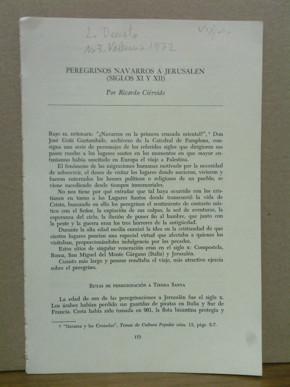 Peregrinos navarros a Jerusalén (siglo XI y XII) | Rare and modern books | Ciervide, Ricardo