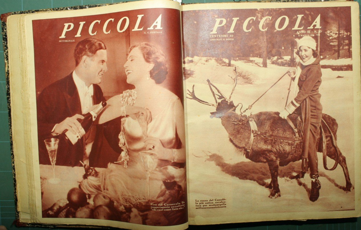 Collana Piccola. Anno III - Nn. 1/52 (7 gennaio/30 dicembre) - in 4° - pp.15 pp. a fascicolo - Mezza tela - 52 fascicoli rilegati in volume - Brossure illustrate, molte illustrazioni in b/n nel testo e fuori testo a piena pagina - Testo su più colonne - Brossura fasc. n. 2 mancante e n. 52 staccata, mancanze alle pp. 11,15,2-3,2,5,2-15 dei fasc. n. 2,3,16,28,39,51, strappi senza mancnaze in poche pp.