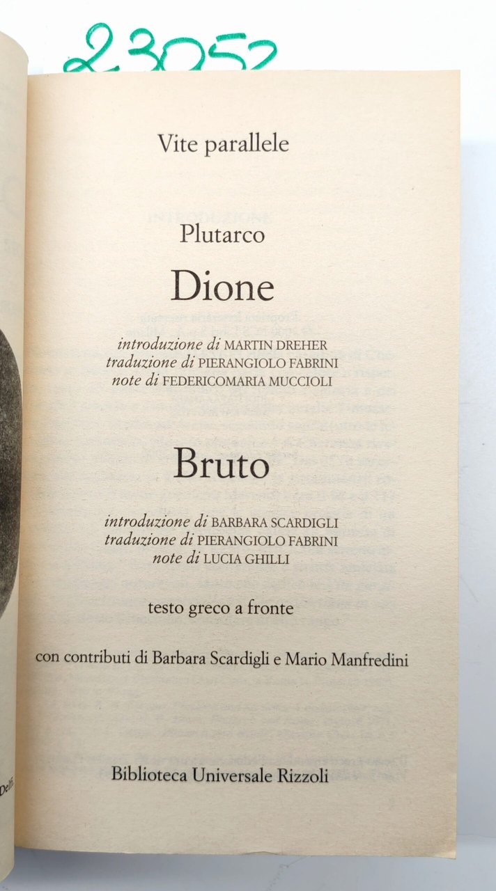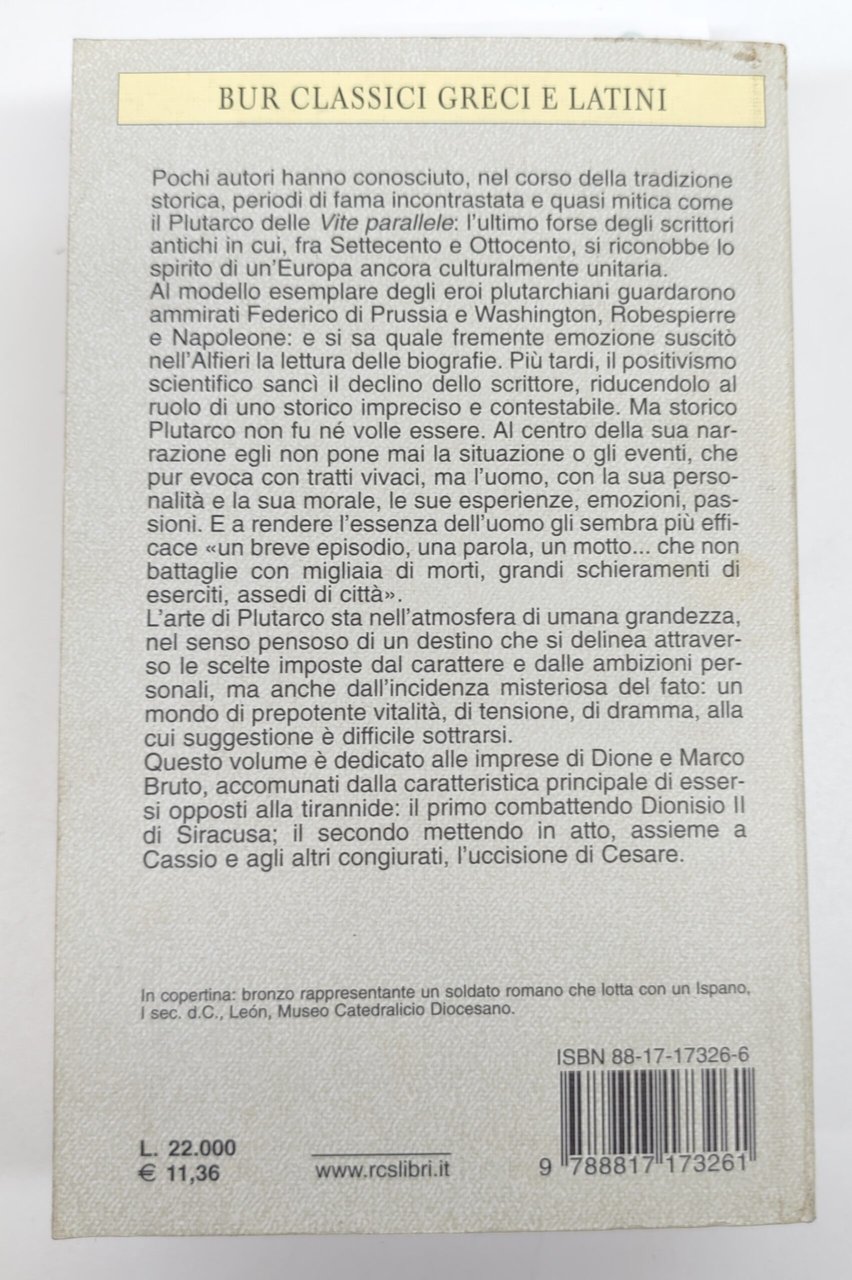 Plutarco Vite parallele Dione Bruto BUR Rizzoli 1° edizione 2000