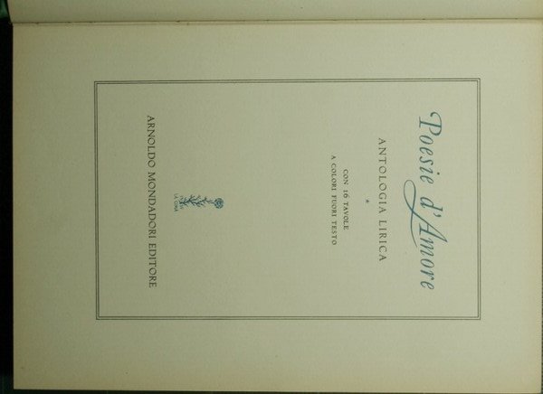 Antologia lirica - in 8° - pp.342 - Tela con titolo in oro al dorso - Tavole a colori fuori testo