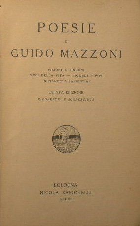 Visioni e disegni - Voci della vita - Ricordi e voti - Intiamenta Sapientale - Quinta edizione ricorretta e accresciuta - in 8° - pp.518 - Tela con titolo in oro al piatto superiore