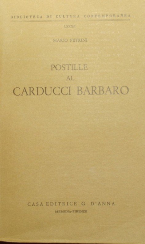 Postille al Carducci barbaro | Rare and modern books | Petrini Mario