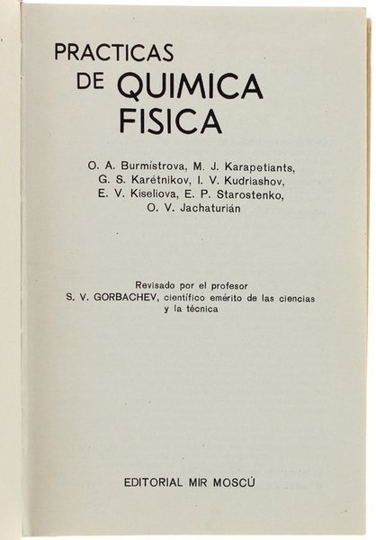 PRACTICAS DE QUIMICA FISICA. | Rare and modern books | Gorbachev S.V. (Revisado Por)