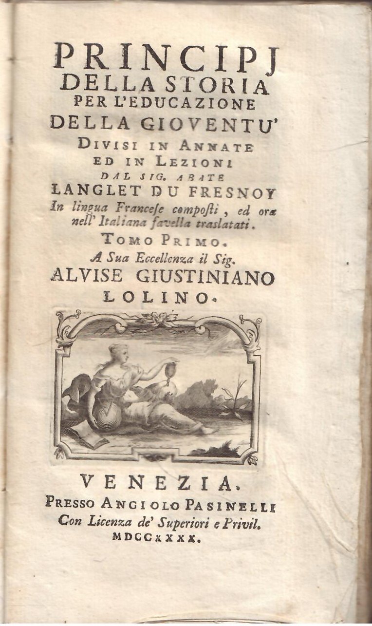 PRINCIPJ DELLA STORIA PER L'EDUCAZIONE DELLA GIOVENTU DIVISE IN ANNATE ED IN LEZIONI | Rare and modern books | Langlet Du Fresnoy