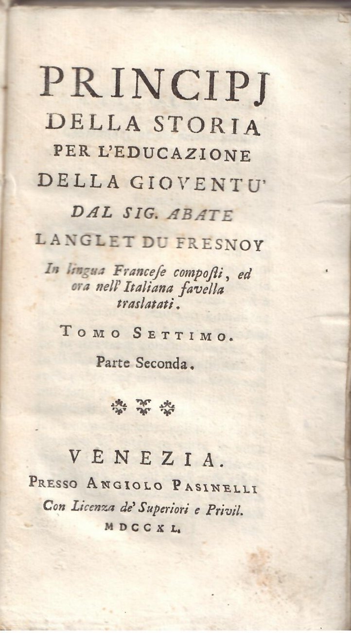 PRINCIPJ DELLA STORIA PER L'EDUCAZIONE DELLA GIOVENTU DIVISE IN ANNATE ED IN LEZIONI | Rare and modern books | Langlet Du Fresnoy