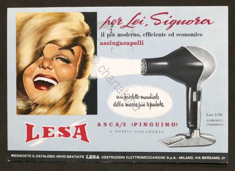 Pubblicità Asciugacapelli LESA Asca/3 - Cartolina pubblicitaria - 1960 | Rare and modern books |