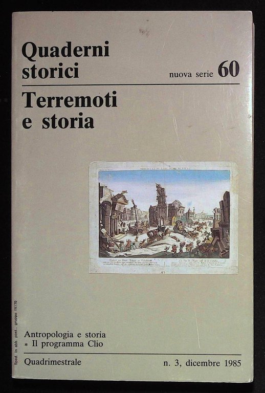 Qauderni storici. Nuova serie n° 60. Terremoti e storia