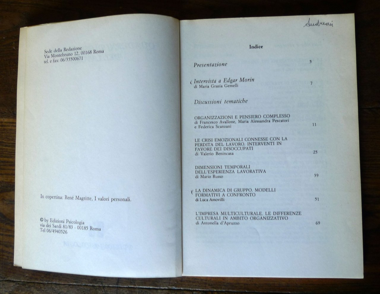 QUADERNI DI PSICOLOGIA DEL LAVORO.N.1 1992, pp.142n.3 1994, pp.120Appendice n.1 1992 REPERTORIO BIBLIOGRAFICO 1976-1980, pp.76Appendice n.2 1993 REPERTORIO BIBLIOGRAFICO 1981-1985, pp.64Edizioni Psicologia, Roma 1992-1994,brossura, 22,5x16 cm.,peso: g.750cod.10287CONDIZIONI DEI LIBRI: molto buone,n.3: copertina ingiallita