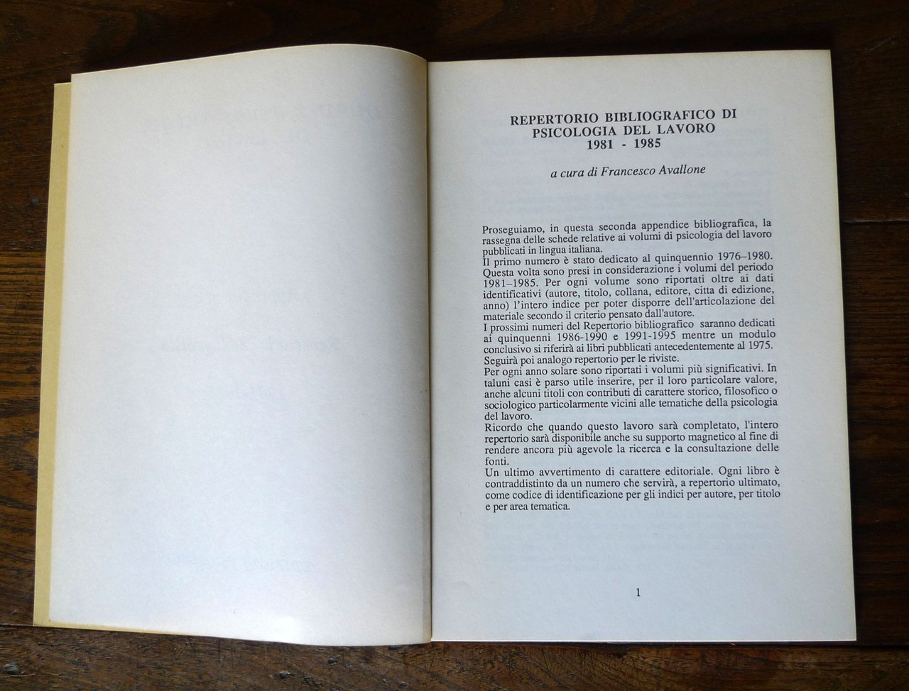 QUADERNI DI PSICOLOGIA DEL LAVORO 1/3+Appendice REPERTORIO BIBLIOGRAFICO 1992-94 | Rare and modern books |