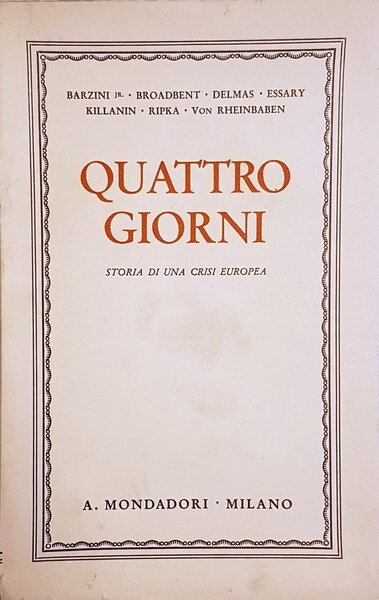QUATTRO GIORNI - Storia di una crisi europea | Rare and modern books | L. Barzini Jr. - J. W. Broadbent - G. Delmas - J. F. Essary - M., Killanin - H. Ripka - W. C. F. Von Rheinbaben