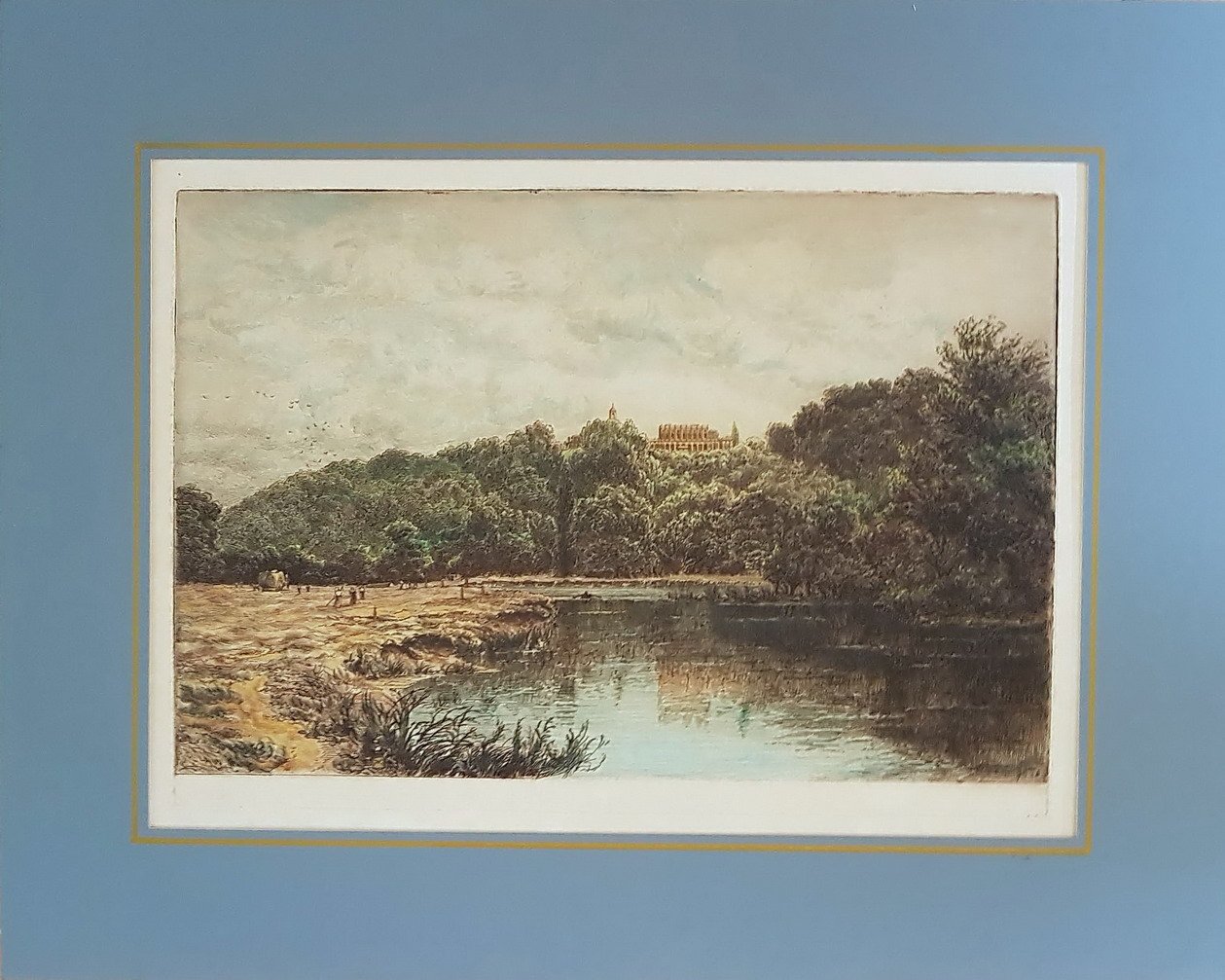 Incisione calcografica all'acquaforte acquerellata, dim. L. 53 x H. 38,8 cm. l'intero foglio con gli ampi margini (L. 35,5 x 23,7 cm. la sola parte incisa) - Titoli: all'interno dell'inciso in basso a sx.: D. LAW. - In buone condizioni - Incorniciata con pass-partout blu.