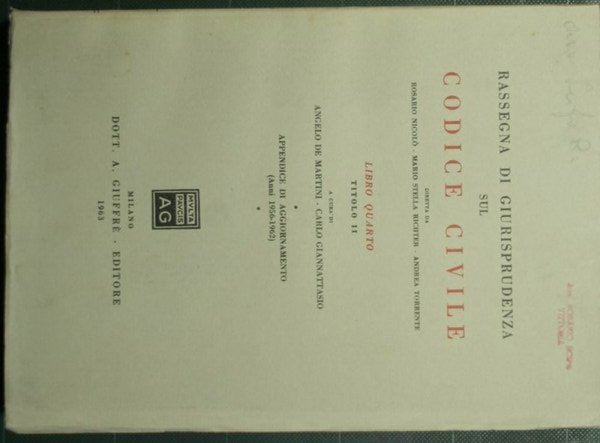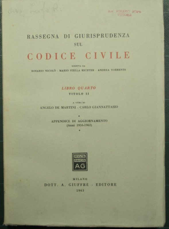 Rassegna di giurisprudenza sul Codice Civile - Libro IV - Titolo II, Appendice di aggiornamento | Rare and modern books |