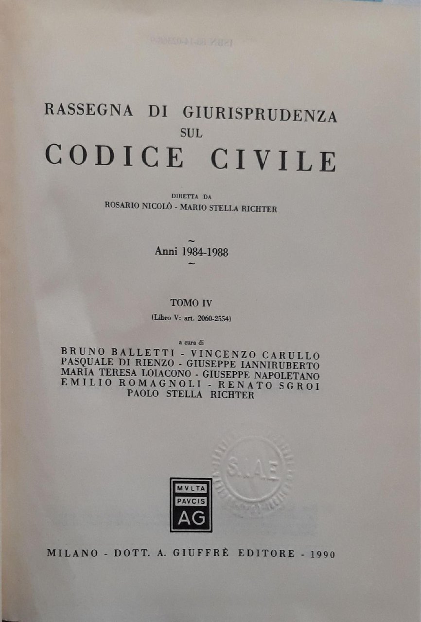 Rassegna di giurisprudenza sul Codice civile. Anni 1984-1988. Artt. 2060 - 2554 (Vol. 4) | Rare and modern books | Rosario Nicolò, Mario Stella Richter, ,Rosario Nicolò, Mario Stella Richter