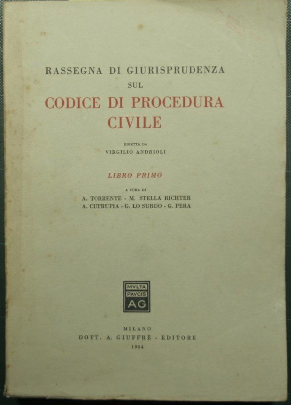 Diretta da Virgilio Andrioli. A cura di A. Torrente, M. Stella Richter, A. Cutrupia, G. Lo Surdo, G. Pera - in 8° - pp.VI + 653 - Brossura editoriale - Volume quasi interamente intonso