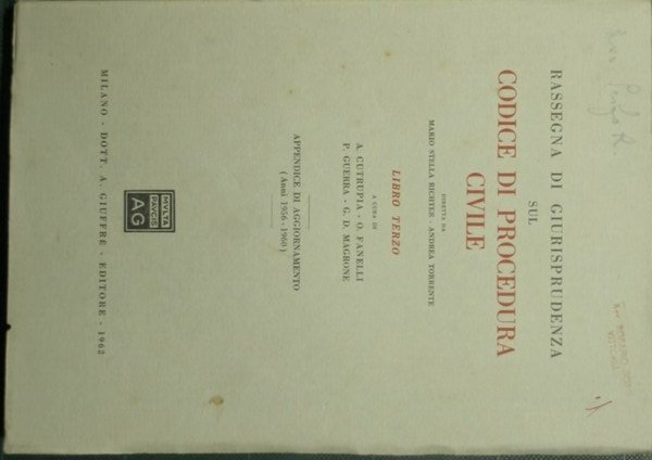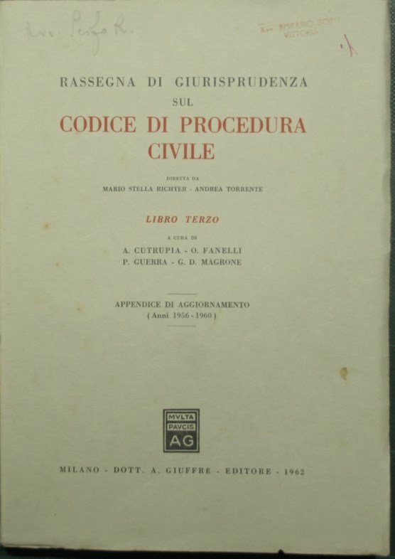 Rassegna di giurisprudenza sul Codice di Procedura Civile - Libro III, Appendice di aggiornamento | Rare and modern books |