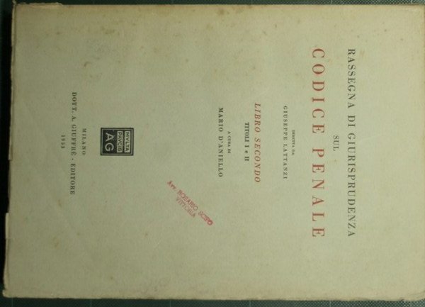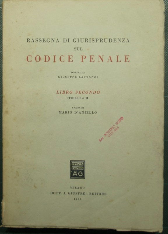 Rassegna di giurisprudenza sul Codice Penale - Libro II, Titoli I e II | Rare and modern books |