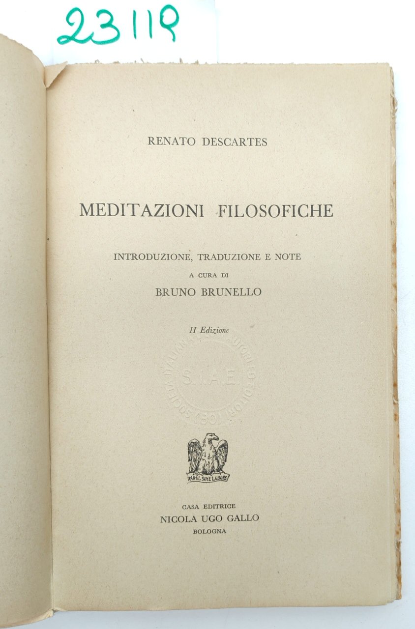 Renato Descartes Meditazioni filosofiche Gallo 1952 | Rare and modern books | Renato Descartes