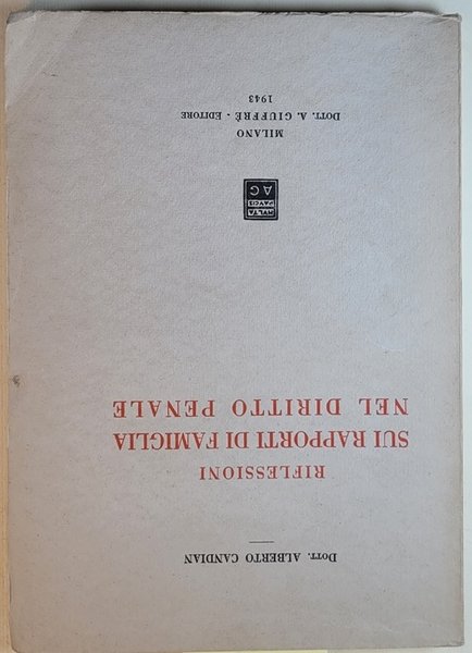 Riflessioni sui rapporti di famiglia nel diritto penale | Rare and modern books | Candian Alberto