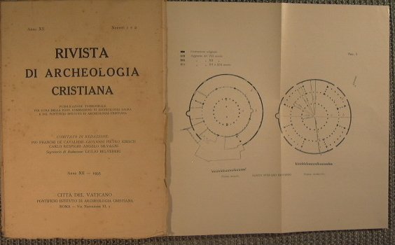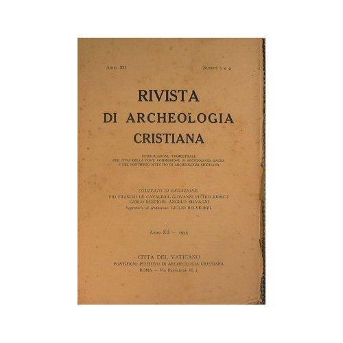 Pubblicazione trimestrale per cura della Pont.Commissione di Archeologia Sacra - in 8° - pp.390 - Cartonata editoriale - Due Volumi - Diverse illustrazioni nel testo anche a piena e doppia pagina - bella conservazione,annata completa - Fra i contributi: Krautheimer 'Santo Stefano Rotondo a Roma e la Chiesa del Santo Sepolcro a Gerusalemme' - Josi 'Note sul Cimitero di Pretestato' - Silvagni 'Se il Carme Damasiano di S.Felice appartenga veramente a Nola' - Toraldo 'Un ipogeo cristiano ritenuto distrutto nel cimitero di Tropea' - Nasalli Rocca 'Una iscrizione cristiana del VI secolo al Museo di Piacenza'. Etc etc