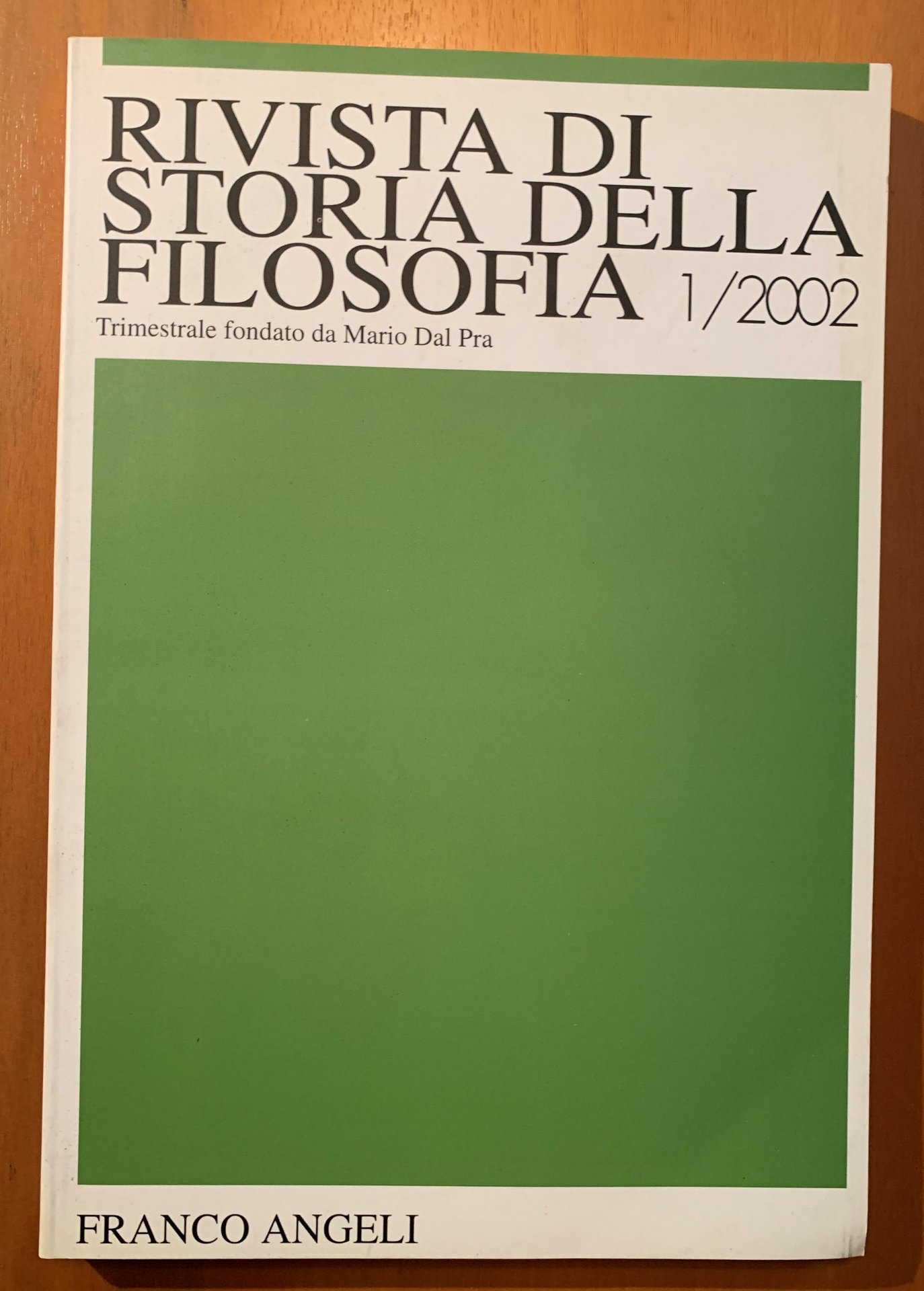 Rivista di Storia della Filosofia. Trimestrale fondato da Mario Dal Pra Anno LVII Nuova Serie 1/2002 | Rare and modern books | AA.VV. (Rambaldi Feldmann, Enrico I.: Coordinatore della Direz, ,AA.VV. (Rambaldi Feldmann, Enrico I.: Coordinatore della Dire