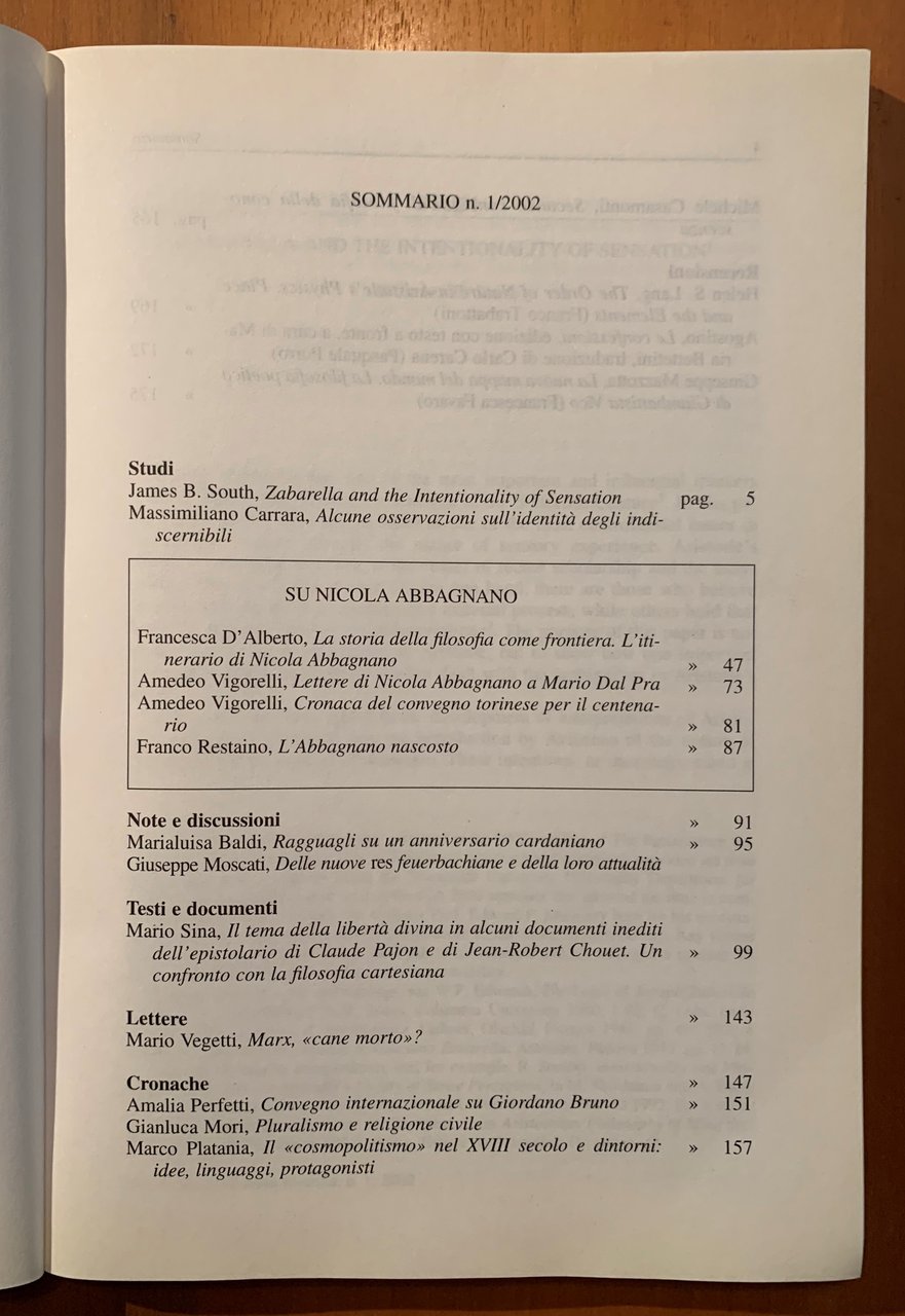 I ed. (marzo 2002) del Trimestrale fondato da Mario Dal Pra Anno LVII Nuova Serie 1/2002. Direzione e redazione: Via De Togni, 7 - Milano. Amministrazione: viale Monza, 106. VIII/1-176=176/brossura satinata. Stato molto buono.