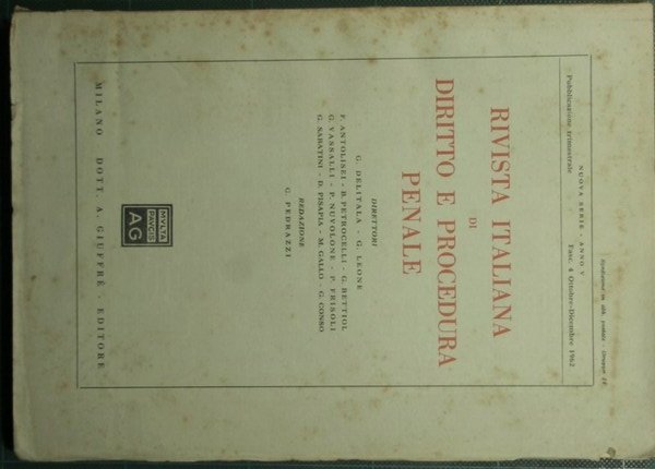 Rivista italiana di diritto e procedura penale - Nuova serie, Anno V, Fasc. 4 - Ottobre-Dicembre 1962 | Rare and modern books |