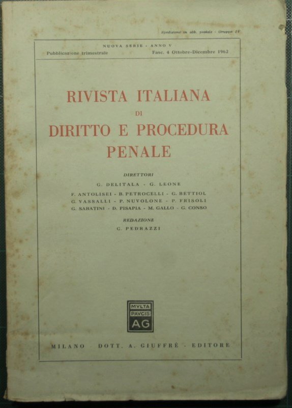 Rivista italiana di diritto e procedura penale - Nuova serie, Anno V, Fasc. 4 - Ottobre-Dicembre 1962