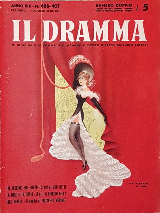 Edizione: il dramma quindicinale di commedie di grande successi diretto da lucio ridenti - anno xix - n. 406-407 (13 luglio - 1 agosto 1943) - commedie riportate nel presente numero: un albergo sul porto (3 atti di ugo betti) - la moglie di craig (3 atti di giorgio kelly, traduzione dall'irlandese di bice chiappelli) - ines mendo o la sconfitta del pregiudizio (5 quadri di prospero mã©rimã©e, versione di vinicio marinucci).
