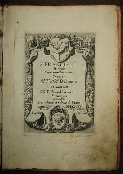 S. Francisci historia cum iconibus in aere excusis ad Ill.mo et R.mo D. Dominum Constantium S.R.E. Presb. Cardin. Sarnanum | Rare and modern books | Villamena Francesco